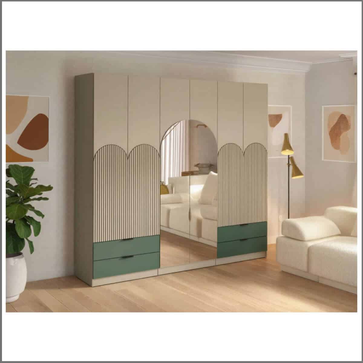 ארון ברוחב 240 כולל חריטה בדלתות הארוכות , מראות בדלתות האמצעיות ו-4 מגירות
