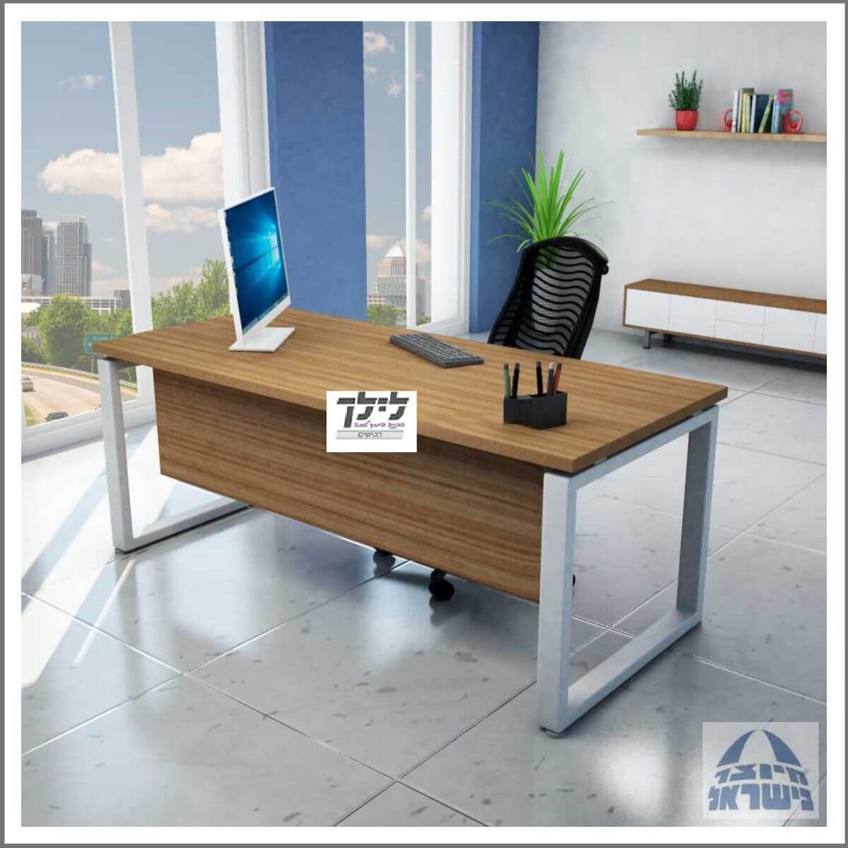 שולחן כתיבה-מחשב הכולל מסתור מלמין בצבע פלטת השולחן