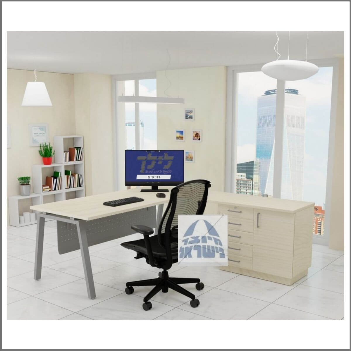 שולחן כתיבה-מחשב פינתי כולל שלוחה