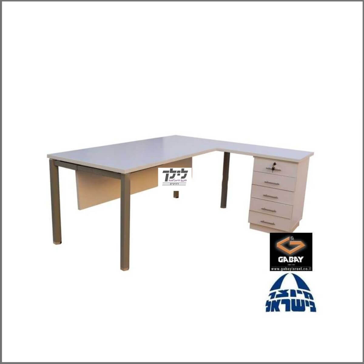שולחן כתיבה-מחשב פינתי כולל שלוחה עם 5 מגירות,כולל מנעול במגירה העליונה