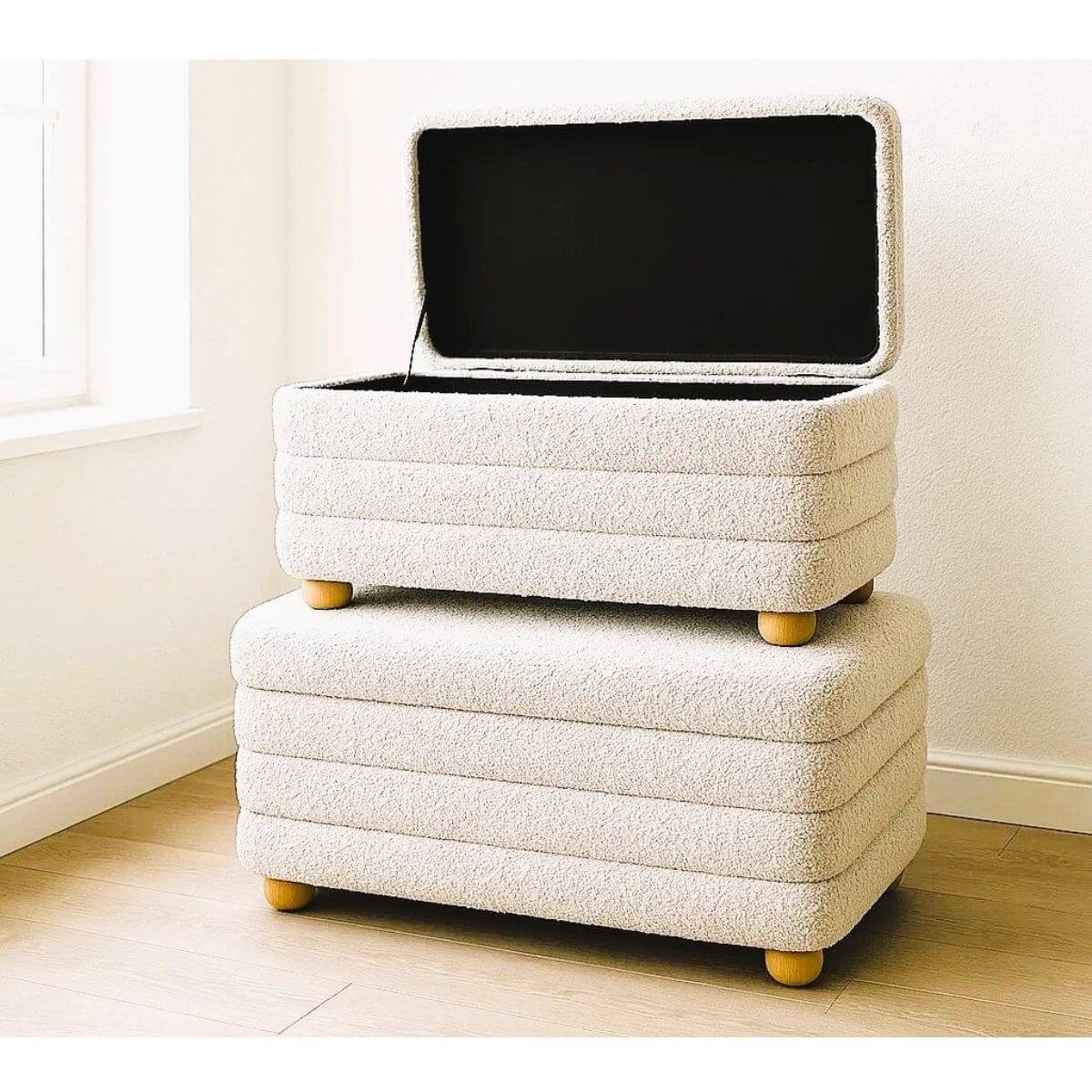 סט הדומים נפתחים מבד בוקלה בצבעים לבן/שמנת/אפור לבחירה