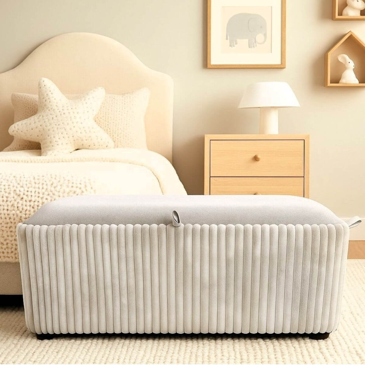 הדום נפתח-ספסל-ארגז מצעים פסים