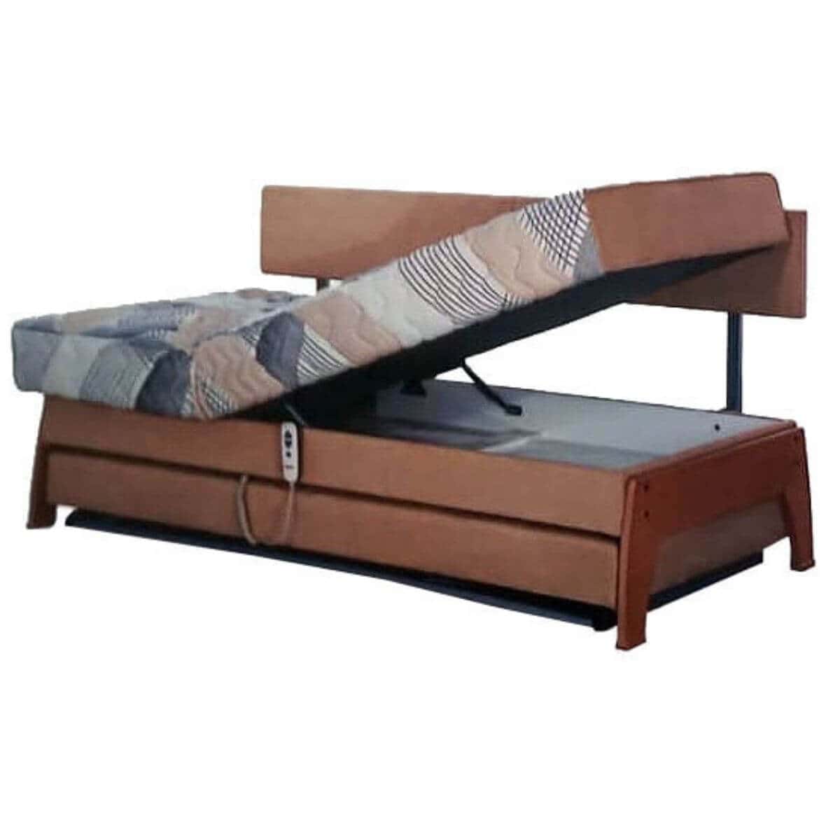 ארגז מצעים מתחת למשטח שינה עליון ניפתחת ע"י מנגנון בוכנות