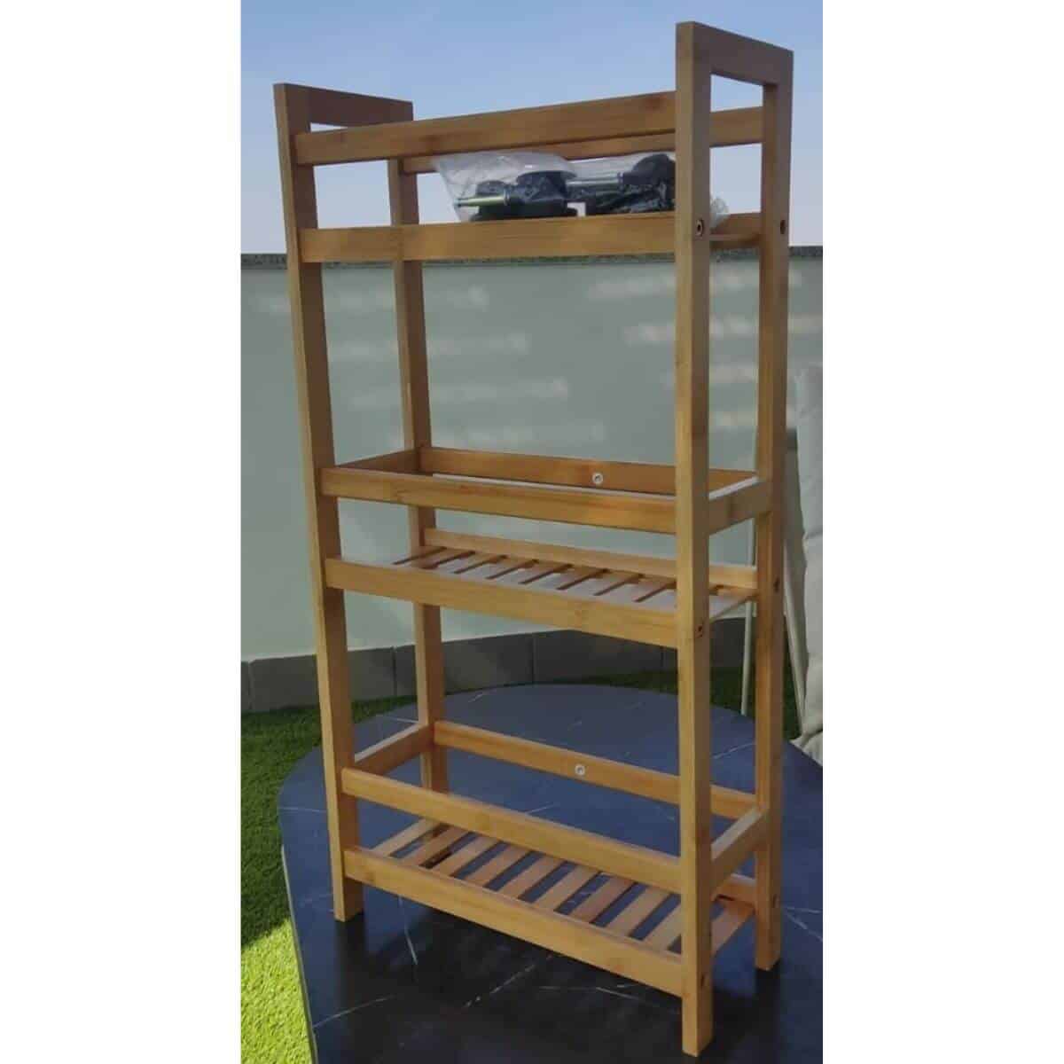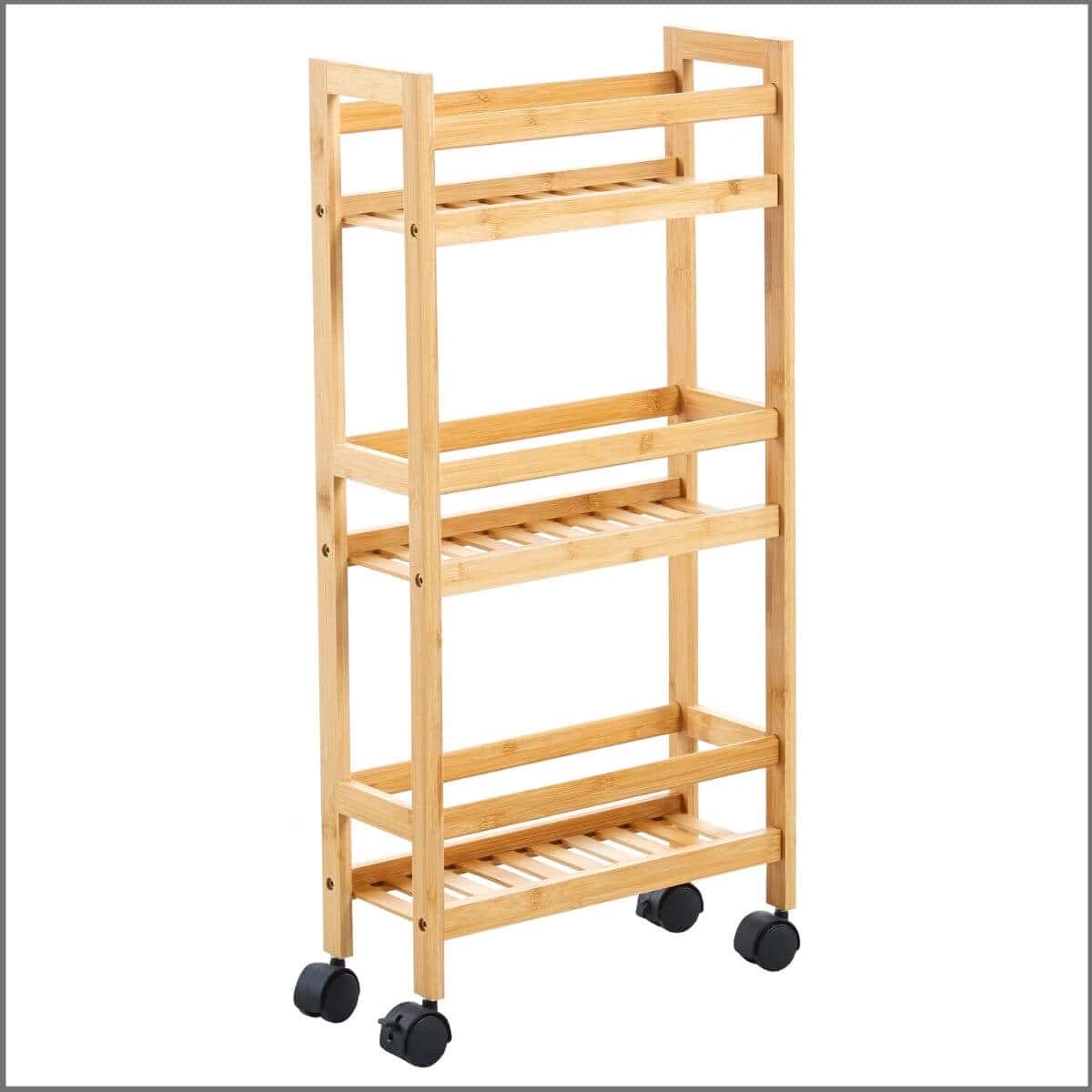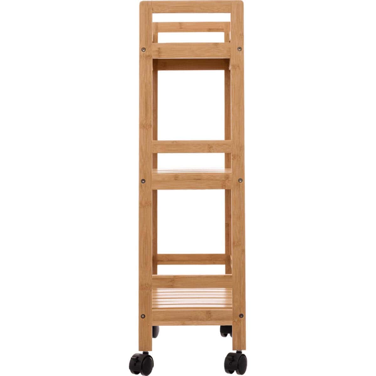 עגלת שירות למטבח עם 3 מדפים עשויה מעץ מלא במבוק